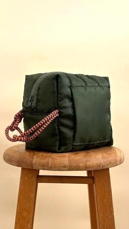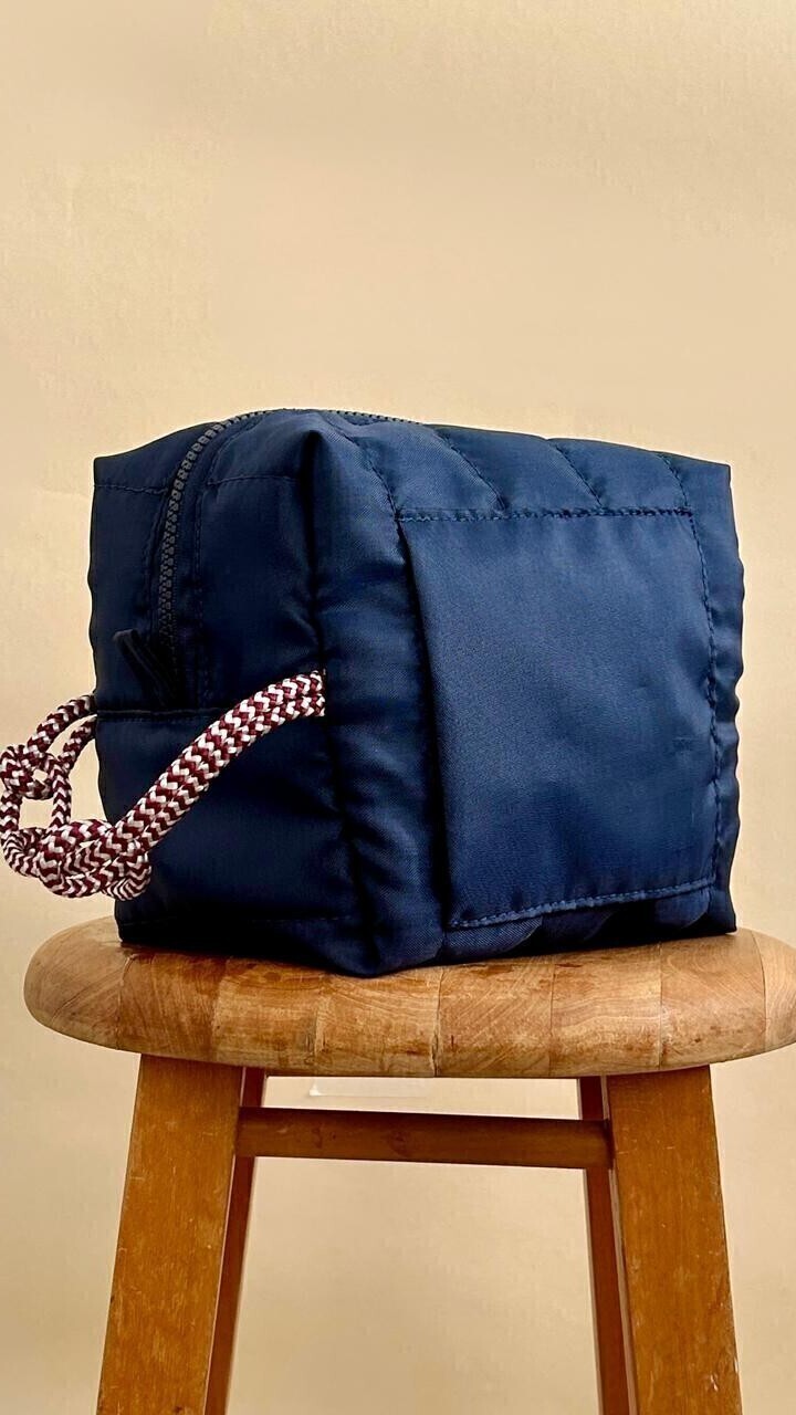 Necessaire em nylon paraquedas super leve, funcional e resistente. Fibra entreforro efeito matelassê. Alça em corda náutica. Zíper superior em nylon. Bolso frontal.